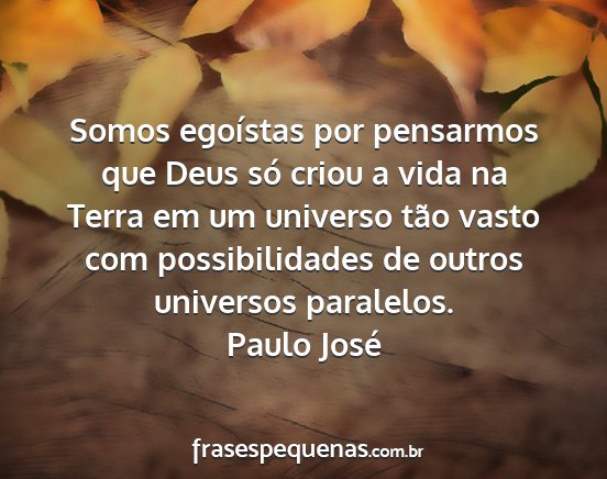 Somos egoístas por pensarmos que Deus só criou a vida na Terra em um universo tão vasto com possibilidades de outros universos paralelos.Paulo José