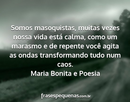Somos masoquistas, muitas vezes nossa vida está calma, como um marasmo e de repente você agita as ondas transformando tudo num caos.Maria Bonita e Poesia