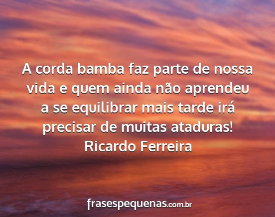 A corda bamba faz parte de nossa vida e quem ainda não aprendeu a se equilibrar mais tarde irá precisar de muitas ataduras!Ricardo Ferreira