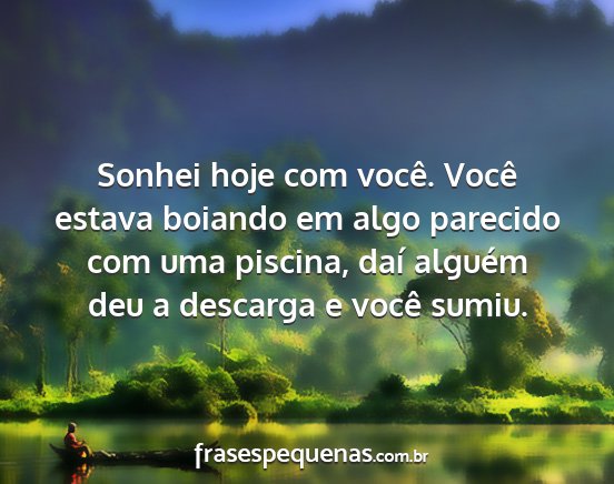 Sonhei hoje com você. Você estava boiando em algo parecido com uma piscina, daí alguém deu a descarga e você sumiu.