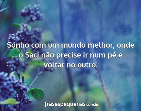 Sonho com um mundo melhor, onde o Saci não precise ir num pé e voltar no outro.
