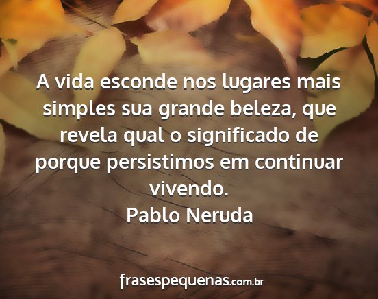 A vida esconde nos lugares mais simples sua grande beleza, que revela qual o significado de porque persistimos em continuar vivendo.Pablo Neruda