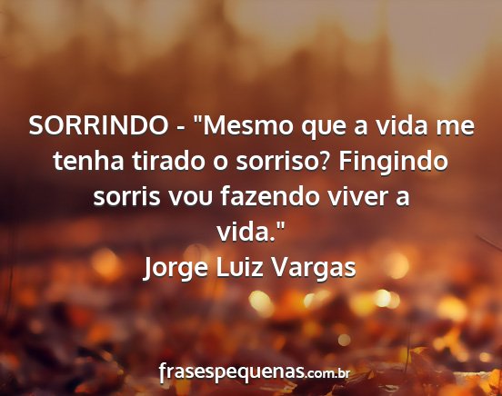 SORRINDO - "Mesmo que a vida me tenha tirado o sorriso? Fingindo sorris vou fazendo viver a vida."Jorge Luiz Vargas