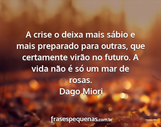 A crise o deixa mais sábio e mais preparado para outras, que certamente virão no futuro. A vida não é só um mar de rosas.Dago Miori