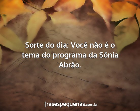 Sorte do dia: Você não é o tema do programa da Sônia Abrão.