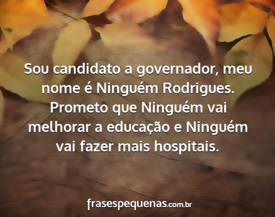 Sou candidato a governador, meu nome é Ninguém Rodrigues. Prometo que Ninguém vai melhorar a educação e Ninguém vai fazer mais hospitais.