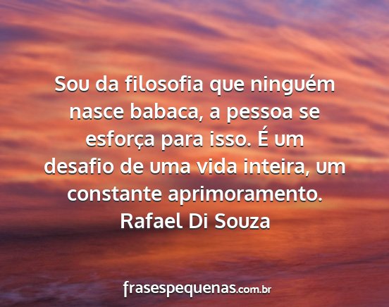 Sou da filosofia que ninguém nasce babaca, a pessoa se esforça para isso. É um desafio de uma vida inteira, um constante aprimoramento.Rafael Di Souza