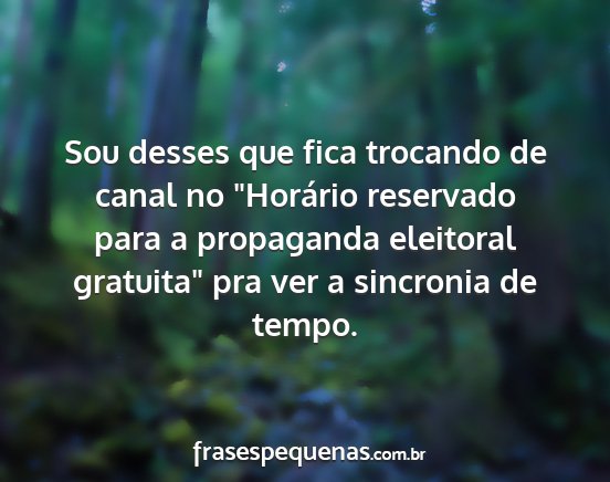 Sou desses que fica trocando de canal no "Horário reservado para a propaganda eleitoral gratuita" pra ver a sincronia de tempo.