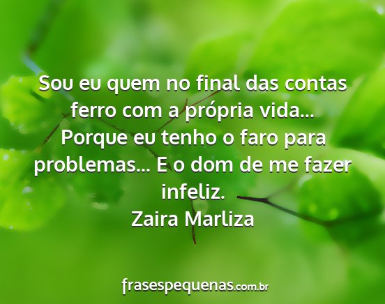 Sou eu quem no final das contas ferro com a própria vida... Porque eu tenho o faro para problemas... E o dom de me fazer infeliz.Zaira Marliza