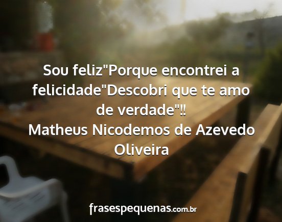 Sou feliz"Porque encontrei a felicidade"Descobri que te amo de verdade"!!Matheus Nicodemos de Azevedo Oliveira