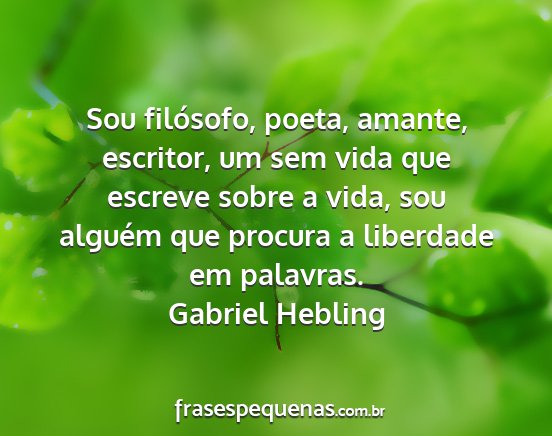 Sou filósofo, poeta, amante, escritor, um sem vida que escreve sobre a vida, sou alguém que procura a liberdade em palavras.Gabriel Hebling
