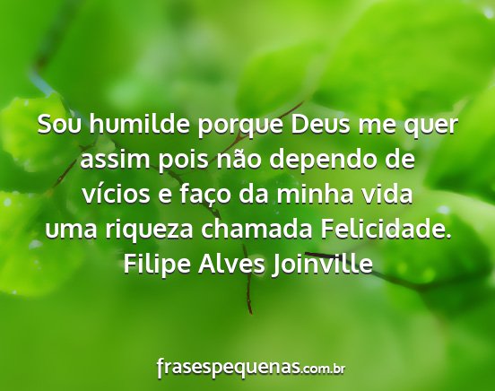 Sou humilde porque Deus me quer assim pois não dependo de vícios e faço da minha vida uma riqueza chamada Felicidade.Filipe Alves Joinville