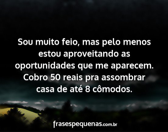 Sou muito feio, mas pelo menos estou aproveitando as oportunidades que me aparecem. Cobro 50 reais pra assombrar casa de até 8 cômodos.