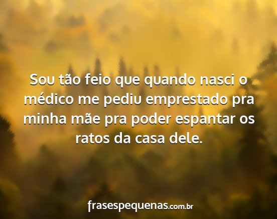 Sou tão feio que quando nasci o médico me pediu emprestado pra minha mãe pra poder espantar os ratos da casa dele.