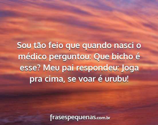 Sou tão feio que quando nasci o médico perguntou: Que bicho é esse? Meu pai respondeu: Joga pra cima, se voar é urubu!