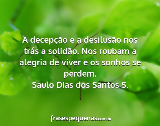 A decepção e a desilusão nos trás a solidão. Nos roubam a alegria de viver e os sonhos se perdem.Saulo Dias dos Santos S.