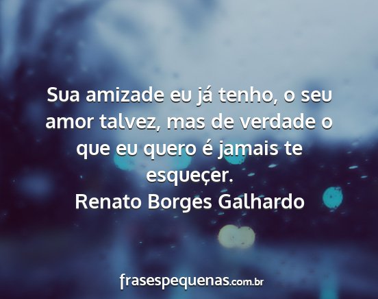 Sua amizade eu já tenho, o seu amor talvez, mas de verdade o que eu quero é jamais te esqueçer.Renato Borges Galhardo