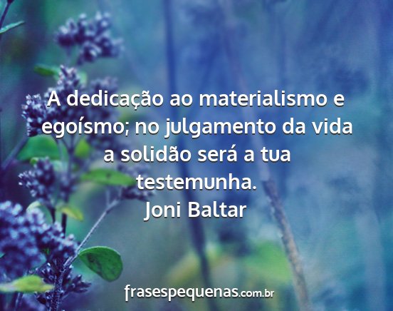 A dedicação ao materialismo e egoísmo; no julgamento da vida a solidão será a tua testemunha.Joni Baltar