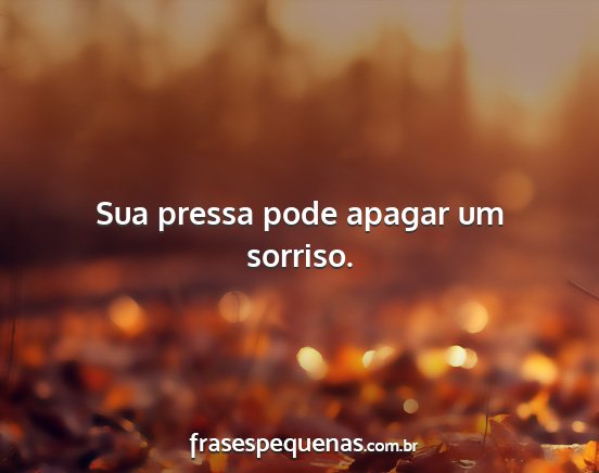 Sua pressa pode apagar um sorriso.