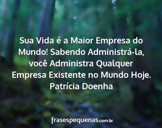 Sua Vida é a Maior Empresa do Mundo! Sabendo Administrá-la, você Administra Qualquer Empresa Existente no Mundo Hoje.Patrícia Doenha