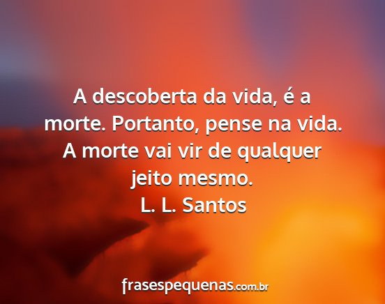 A descoberta da vida, é a morte. Portanto, pense na vida. A morte vai vir de qualquer jeito mesmo.L. L. Santos
