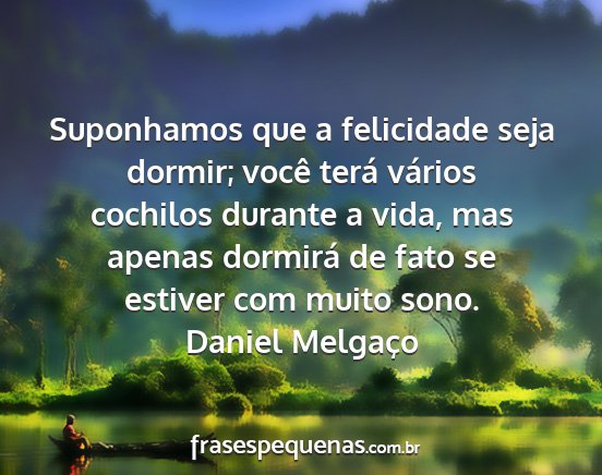 Suponhamos que a felicidade seja dormir; você terá vários cochilos durante a vida, mas apenas dormirá de fato se estiver com muito sono.Daniel Melgaço