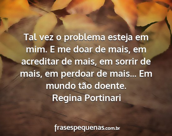 Tal vez o problema esteja em mim. E me doar de mais, em acreditar de mais, em sorrir de mais, em perdoar de mais... Em mundo tão doente.Regina Portinari