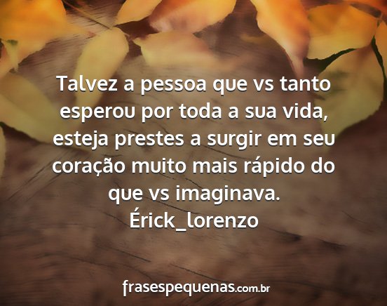 Talvez a pessoa que vs tanto esperou por toda a sua vida, esteja prestes a surgir em seu coração muito mais rápido do que vs imaginava.Érick_lorenzo
