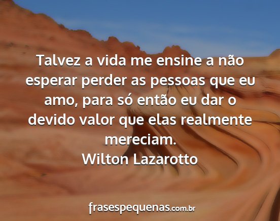 Talvez a vida me ensine a não esperar perder as pessoas que eu amo, para só então eu dar o devido valor que elas realmente mereciam.Wilton Lazarotto