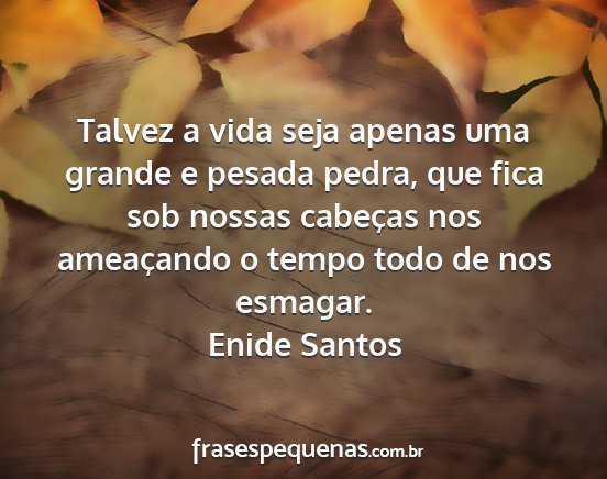 Talvez a vida seja apenas uma grande e pesada pedra, que fica sob nossas cabeças nos ameaçando o tempo todo de nos esmagar.Enide Santos