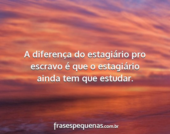 A diferença do estagiário pro escravo é que o estagiário ainda tem que estudar.