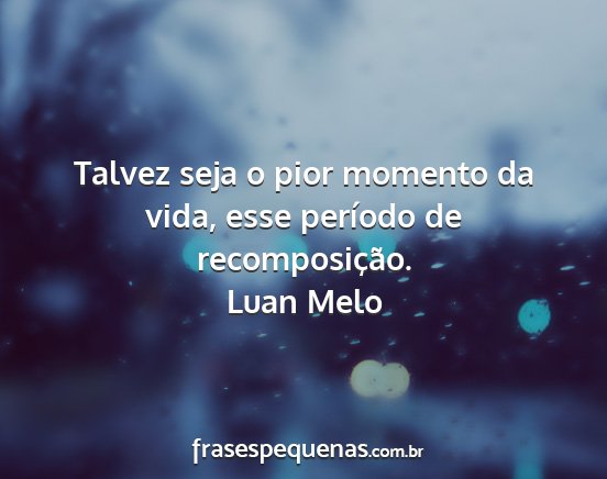 Talvez seja o pior momento da vida, esse período de recomposição.