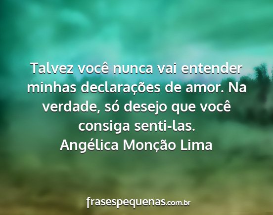 Talvez você nunca vai entender minhas declarações de amor. Na verdade, só desejo que você consiga senti-las.Angélica Monção Lima