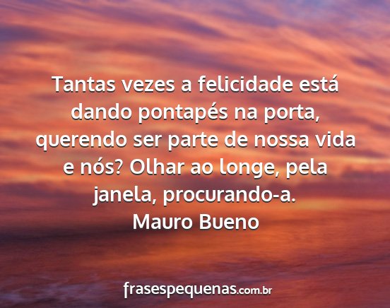 Tantas vezes a felicidade está dando pontapés na porta, querendo ser parte de nossa vida e nós? Olhar ao longe, pela janela, procurando-a.Mauro Bueno