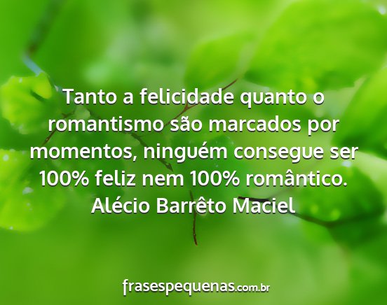 Tanto a felicidade quanto o romantismo são marcados por momentos, ninguém consegue ser 100% feliz nem 100% romântico.Alécio Barrêto Maciel