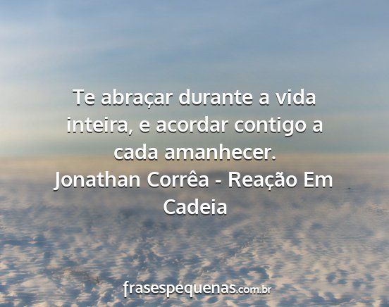 Te abraçar durante a vida inteira, e acordar contigo a cada amanhecer.Jonathan Corrêa - Reação Em Cadeia