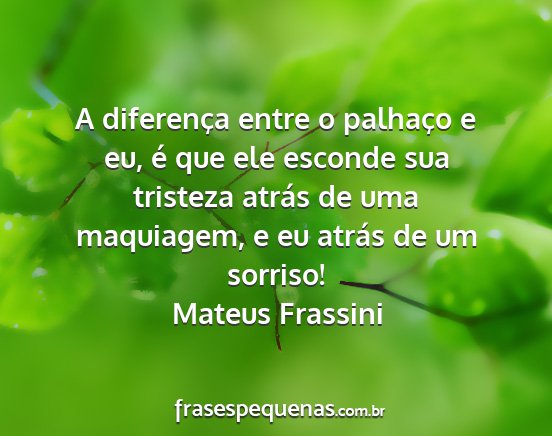 A diferença entre o palhaço e eu, é que ele esconde sua tristeza atrás de uma maquiagem, e eu atrás de um sorriso!Mateus Frassini