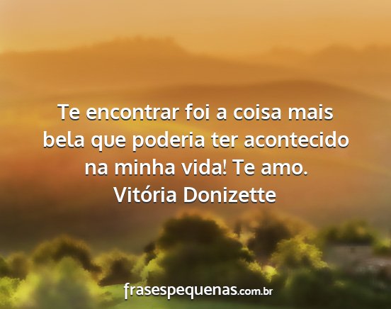 Te encontrar foi a coisa mais bela que poderia ter acontecido na minha vida! Te amo.Vitória Donizette