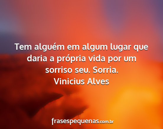 Tem alguém em algum lugar que daria a própria vida por um sorriso seu. Sorria.