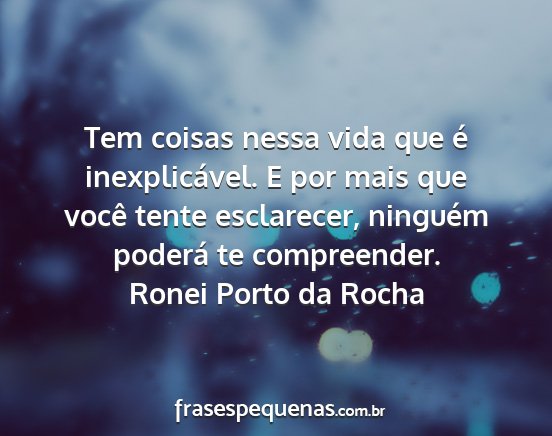 Tem coisas nessa vida que é inexplicável. E por mais que você tente esclarecer, ninguém poderá te compreender.Ronei Porto da Rocha