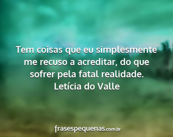 Tem coisas que eu simplesmente me recuso a acreditar, do que sofrer pela fatal realidade.Letícia do Valle