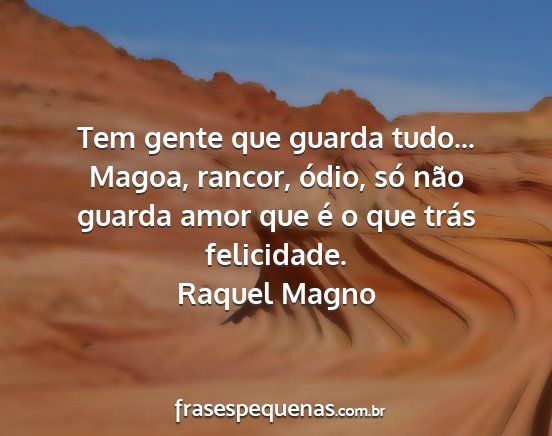 Tem gente que guarda tudo... Magoa, rancor, ódio, só não guarda amor que é o que trás felicidade.Raquel Magno