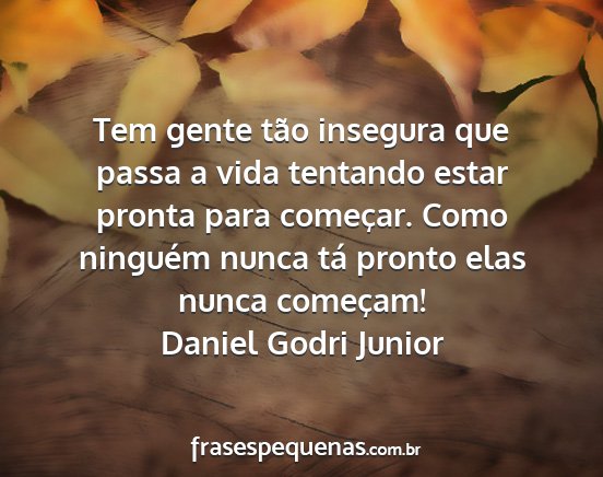 Tem gente tão insegura que passa a vida tentando estar pronta para começar. Como ninguém nunca tá pronto elas nunca começam!Daniel Godri Junior
