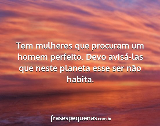 Tem mulheres que procuram um homem perfeito. Devo avisá-las que neste planeta esse ser não habita.