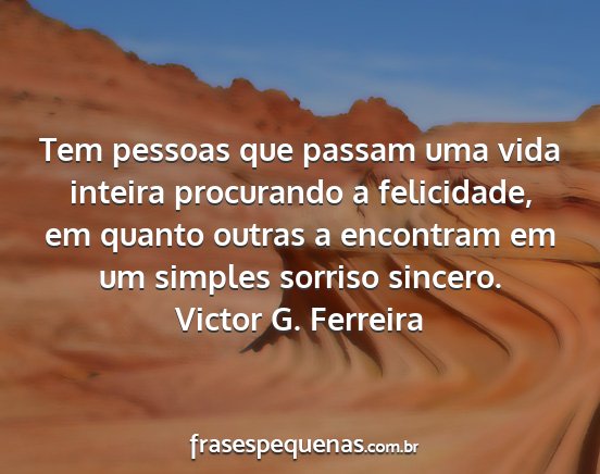 Tem pessoas que passam uma vida inteira procurando a felicidade, em quanto outras a encontram em um simples sorriso sincero.Victor G. Ferreira