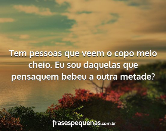 Tem pessoas que veem o copo meio cheio. Eu sou daquelas que pensaquem bebeu a outra metade?