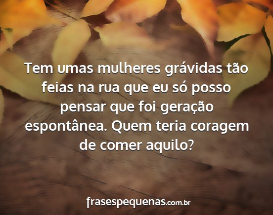 Tem umas mulheres grávidas tão feias na rua que eu só posso pensar que foi geração espontânea. Quem teria coragem de comer aquilo?