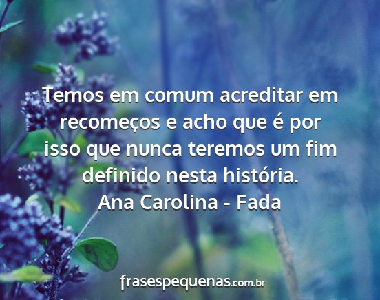 Temos em comum acreditar em recomeços e acho que é por isso que nunca teremos um fim definido nesta história.Ana Carolina - Fada