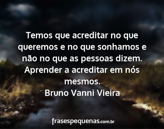 Temos que acreditar no que queremos e no que sonhamos e não no que as pessoas dizem. Aprender a acreditar em nós mesmos.Bruno Vanni Vieira