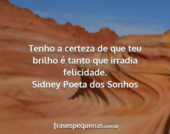 Tenho a certeza de que teu brilho é tanto que irradia felicidade.